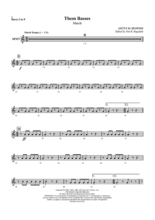 Digital Sheet Music for Them Basses - Horn 3 in F by Getty H. Huffine, Van B. Ragsdale scored for Concert Band; id:453631