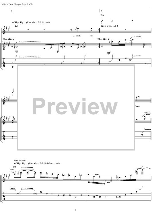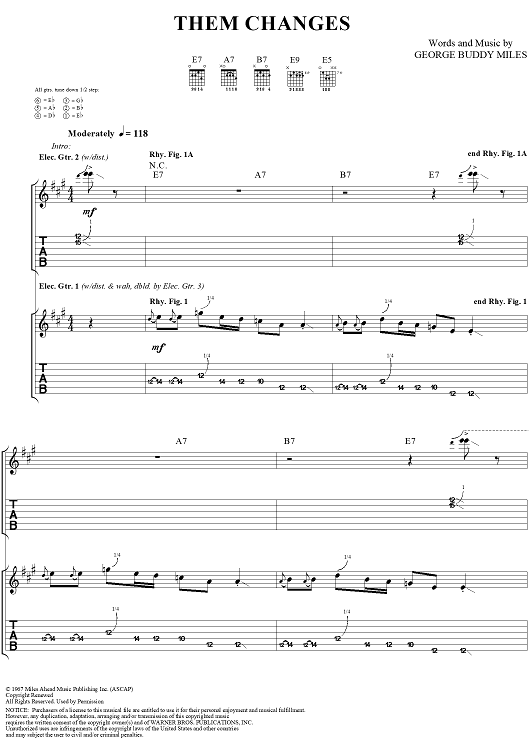 "Them Changes" Sheet Music by Kenny Wayne Shepherd