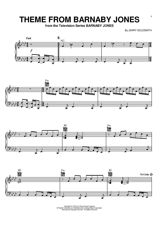 "Theme From Barnaby Jones" Sheet Music by Jerry Goldsmith