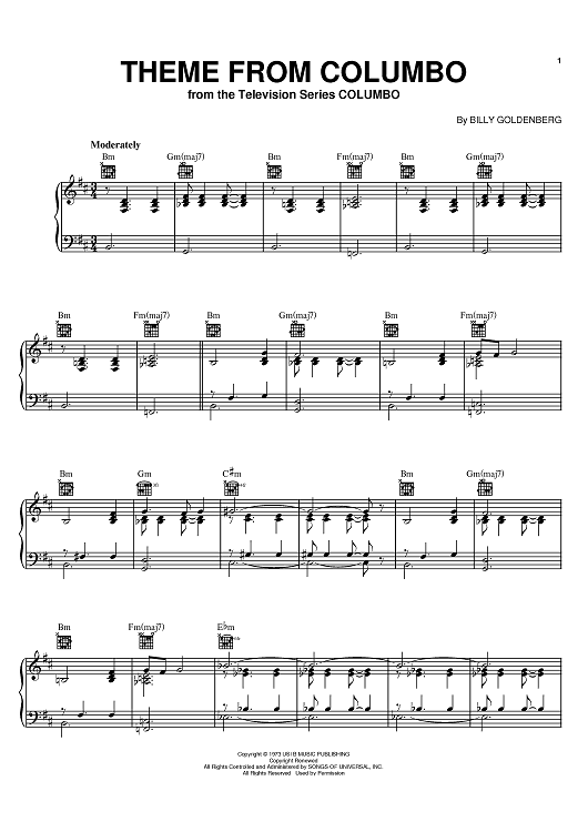 "Theme from Columbo" Sheet Music by Billy Goldenberg