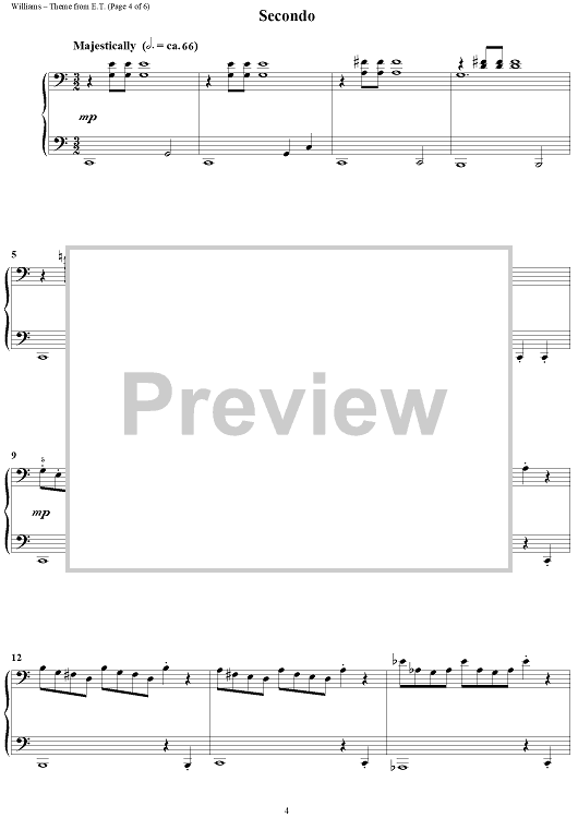 Digital Sheet Music for Theme From E.T. (The Extra-Terrestrial) by John Williams scored for 1 Piano, 4 Hands; id:402733