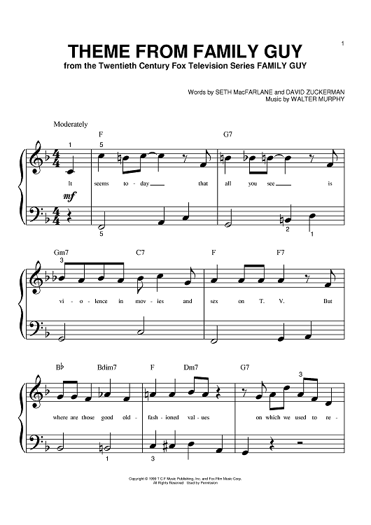 "Theme From Family Guy" Sheet Music by Walter Murphy