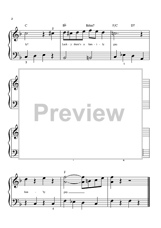 Digital Sheet Music for Theme From Family Guy by Walter Murphy, Seth MacFarlane, David Zuckerman scored for Big Note Piano; id:389720