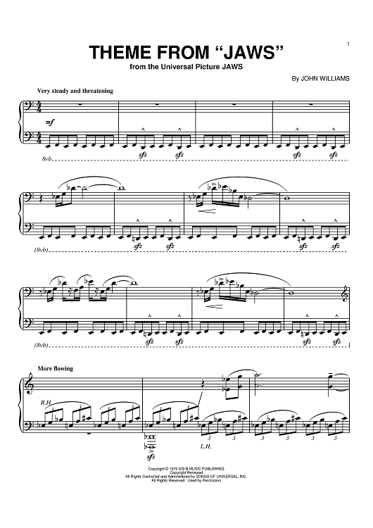 Digital Sheet Music for Theme From "Jaws" by John Williams scored for Piano; id:397211