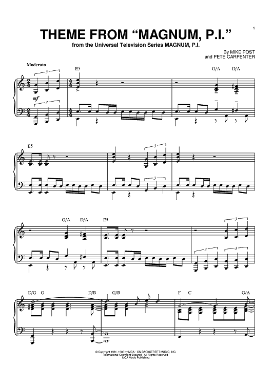 "Theme From "Magnum, P.I."" Sheet Music by Mike Post
