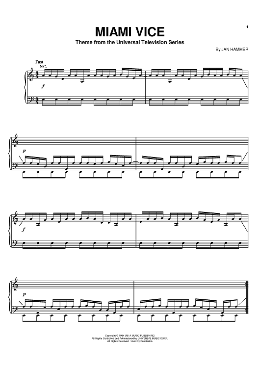 "Theme from Miami Vice" Sheet Music by Jan Hammer
