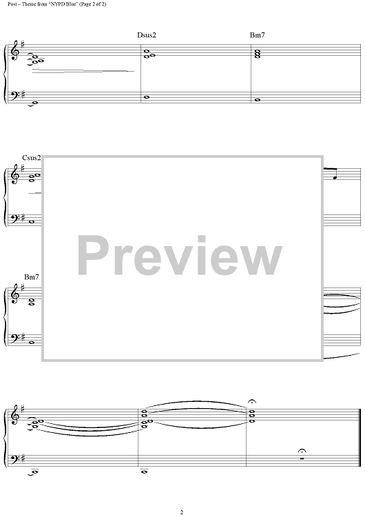 Digital Sheet Music for Theme from ''NYPD Blue'' by Mike Post scored for Piano Solo; id:287962