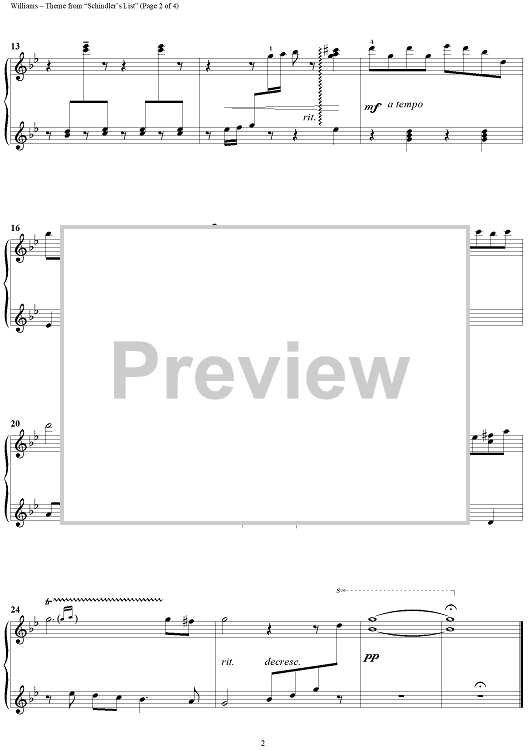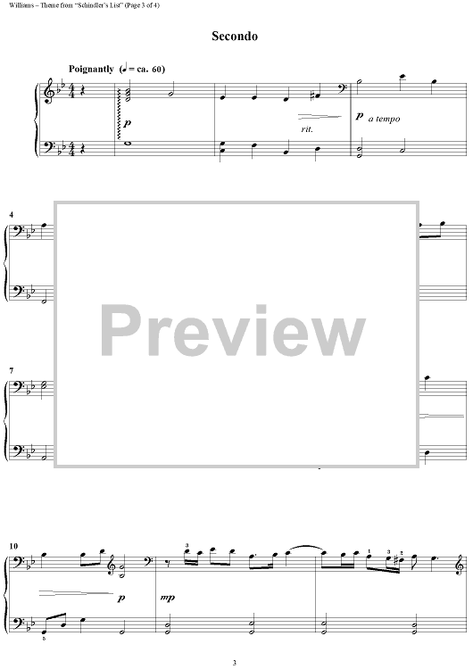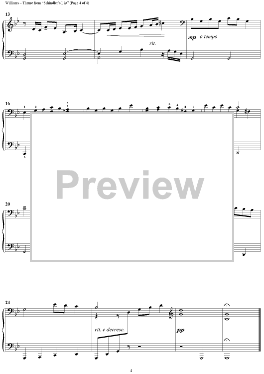 Digital Sheet Music for Theme From "Schindler's List" by John Williams scored for 1 Piano, 4 Hands; id:402728
