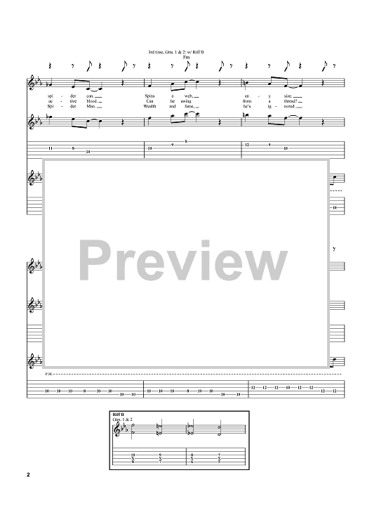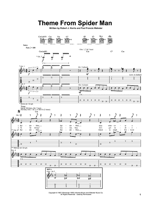 Digital Sheet Music for Theme From Spider-Man by Aerosmith, Paul Francis Webster, Robert J. Harris scored for Guitar Tab; id:369432