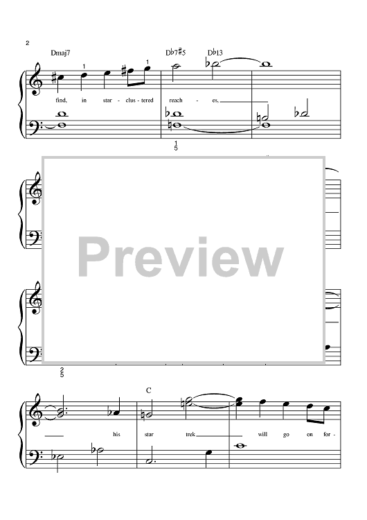 Digital Sheet Music for Theme from Star Trek by Gene Roddenberry, Alexander Courage scored for Big Note Piano; id:385292