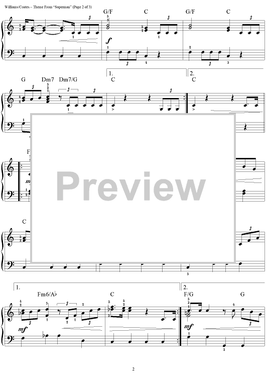 Digital Sheet Music for Theme From Superman by Dan Coates, John Williams scored for Easy Piano; id:263592