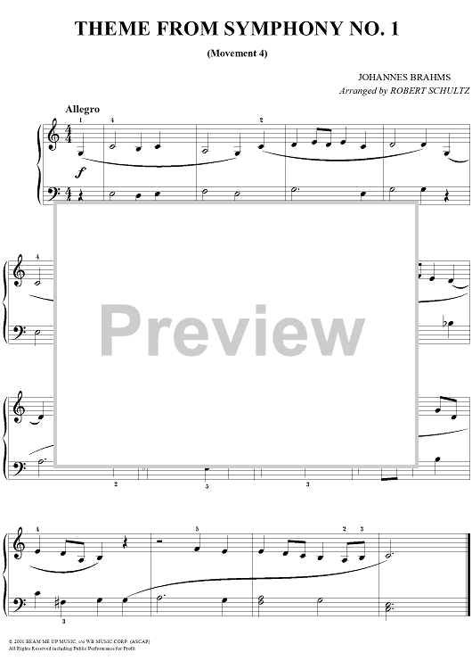 "Theme from Symphony No. 1" Sheet Music by Johannes Brahms