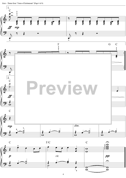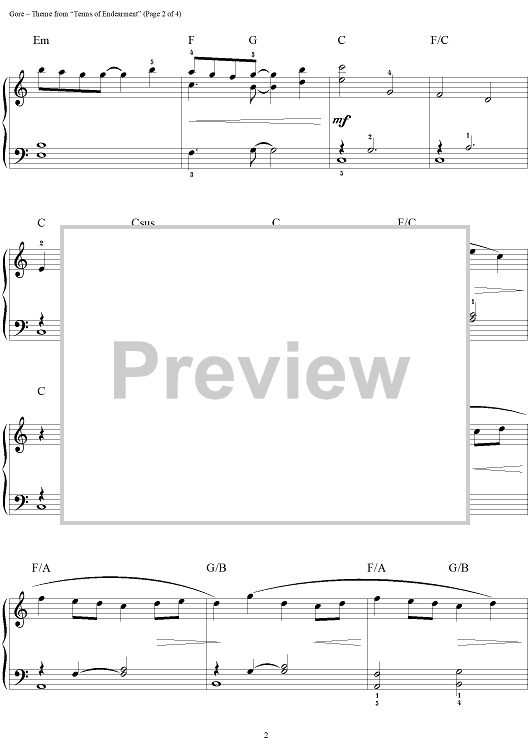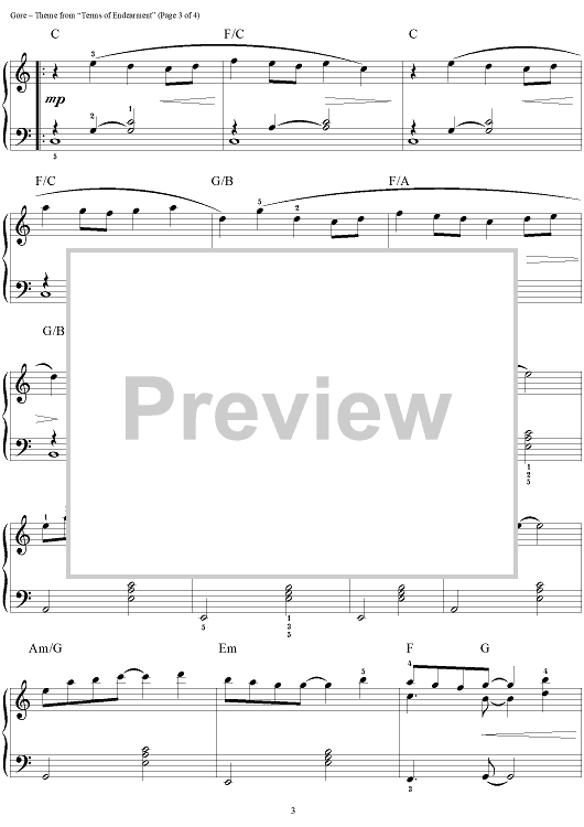 Digital Sheet Music for Theme from "Terms of Endearment" by Michael Gore scored for Easy Piano/Chords; id:269317