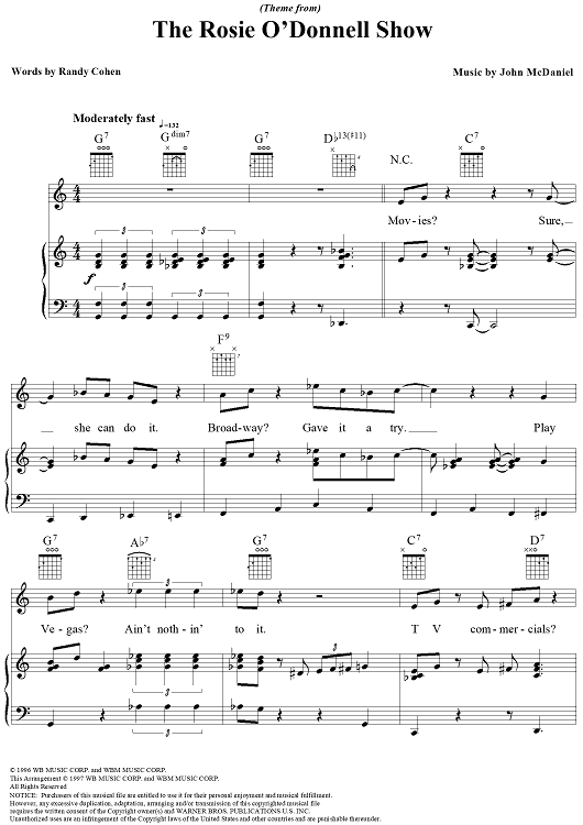 Digital Sheet Music for (Theme from) The Rosie O'Donnell Show by Randy Cohen, John McDaniel scored for Piano/Vocal/Chords; id:96074