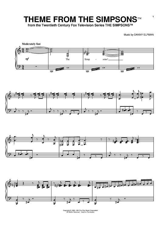 "Theme From The Simpsons" Sheet Music by Danny Elfman