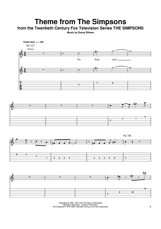 Digital Sheet Music for Theme From The Simpsons by Danny Elfman scored for Guitar Tab; id:391238