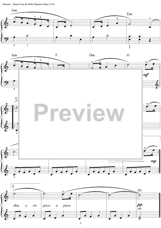 Digital Sheet Music for Theme Song From The Molly Maguires by Henry Mancini, John Brimhall scored for Easy Piano; id:251532
