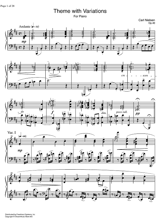 Digital Sheet Music for Theme with variations Op.40 by Carl Nielsen scored for Piano Solo; id:331811