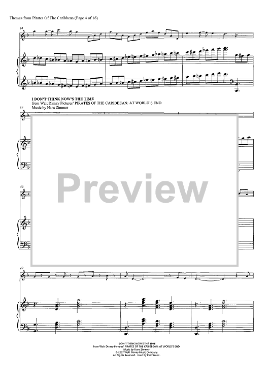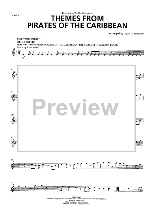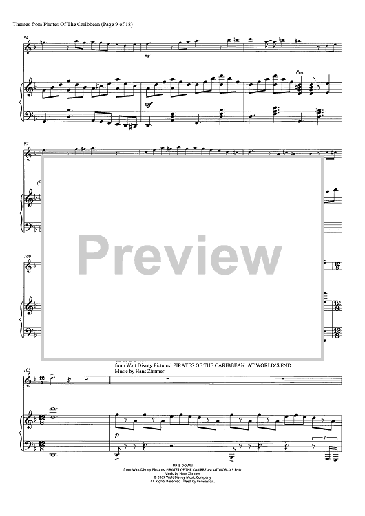 This collaboration between The Piano Guys and Hans Zimmer results in a shimmering, cinematic compilation of themes from Pirates of the Caribbean films. Scored for violin and piano.