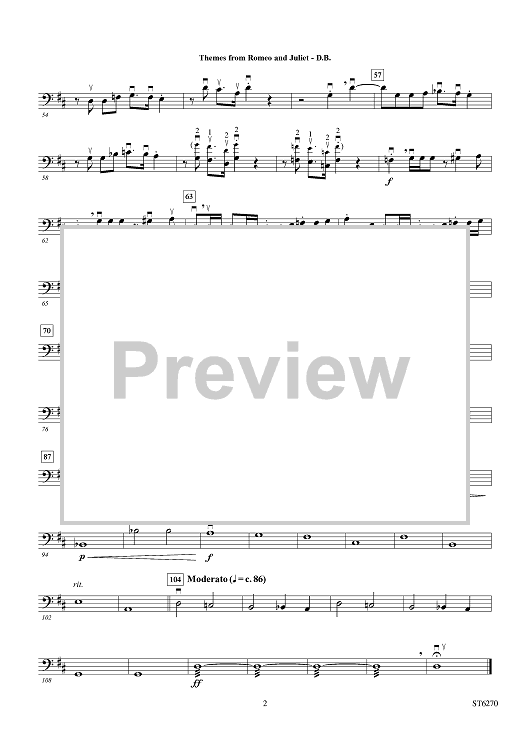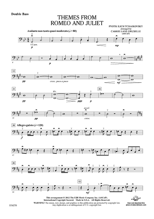 Digital Sheet Music for Themes from Romeo and Juliet - Double Bass by Peter Ilyich Tchaikovsky, Carrie Lane Gruselle scored for String Orchestra; id:431976