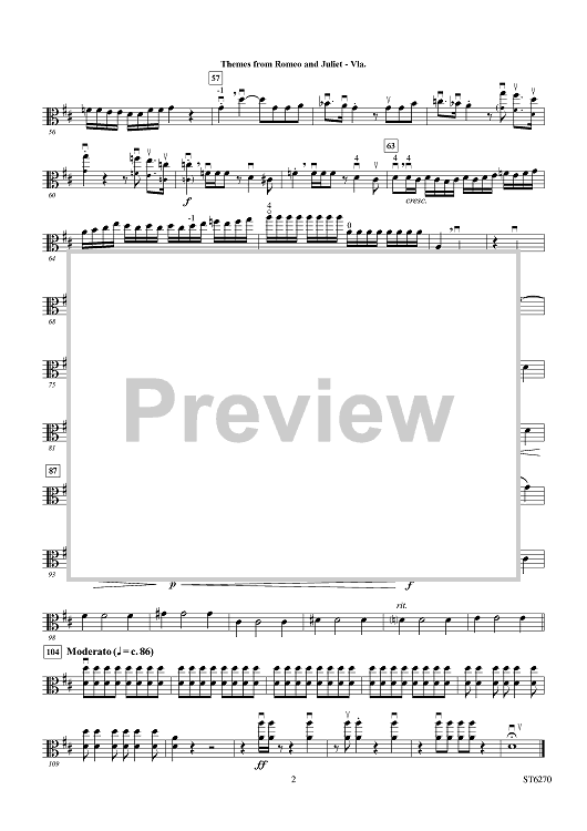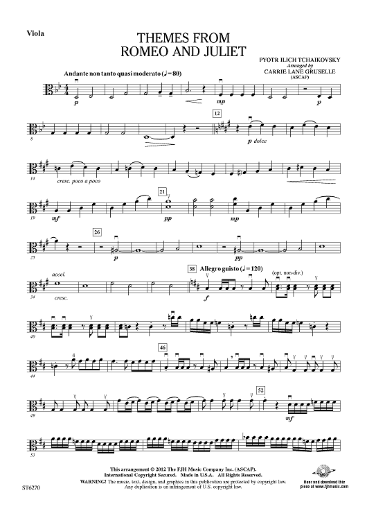 Digital Sheet Music for Themes from Romeo and Juliet - Viola by Peter Ilyich Tchaikovsky, Carrie Lane Gruselle scored for String Orchestra; id:431974