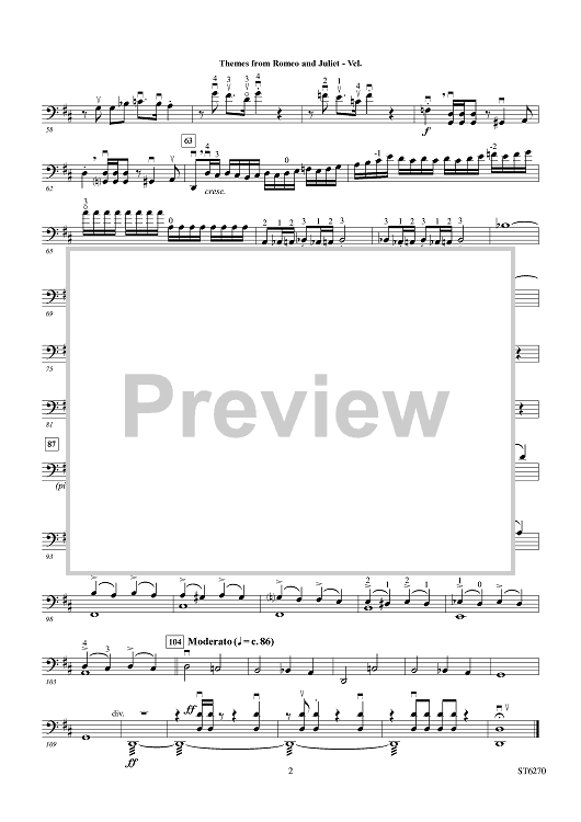 Digital Sheet Music for Themes from Romeo and Juliet - Violoncello by Peter Ilyich Tchaikovsky, Carrie Lane Gruselle scored for String Orchestra; id:431975