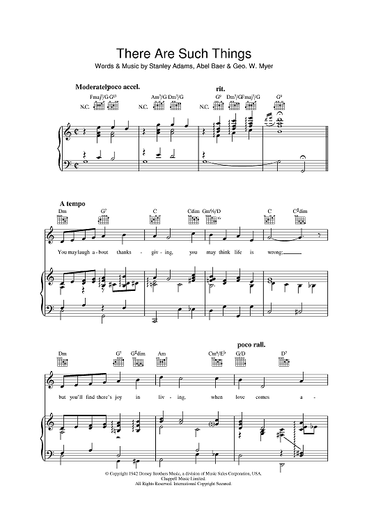 Digital Sheet Music for There Are Such Things by George W. Meyer, Stanley Adams, Abel Baer scored for Piano/Vocal/Chords; id:395697