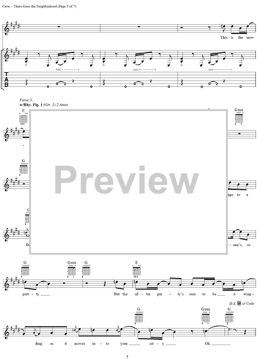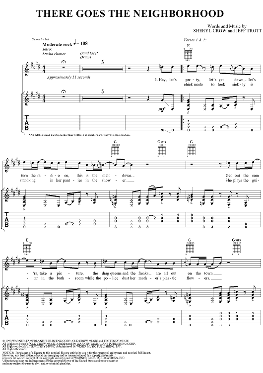 Digital Sheet Music for There Goes the Neighborhood by Sheryl Crow, Jeff Trott scored for Guitar Tab/Vocal; id:118845