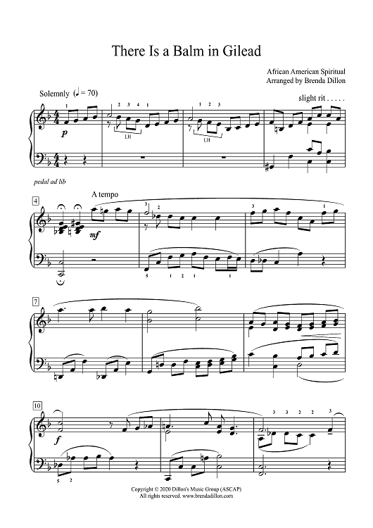 Digital Sheet Music for There Is a Balm in Gilead by African American Spiritual, Brenda Dillon scored for Piano; id:469258