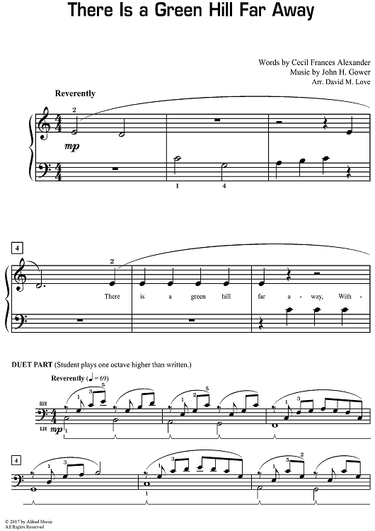 Digital Sheet Music for There Is a Green Hill Far Away by Cecil F. Alexander, David M. Love, John H. Gower scored for Piano Solo/opt.duet; id:498215