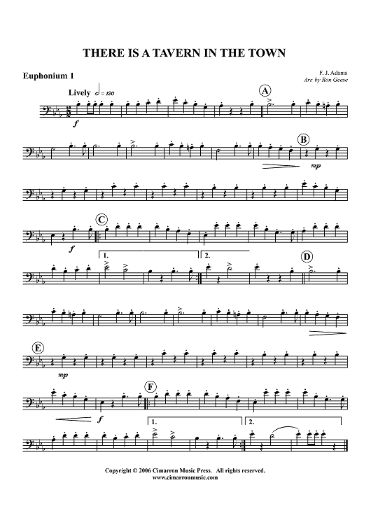 "There is a Tavern in the Town - Euphonium 1 BC/TC" Sheet Music by F. J. Adams