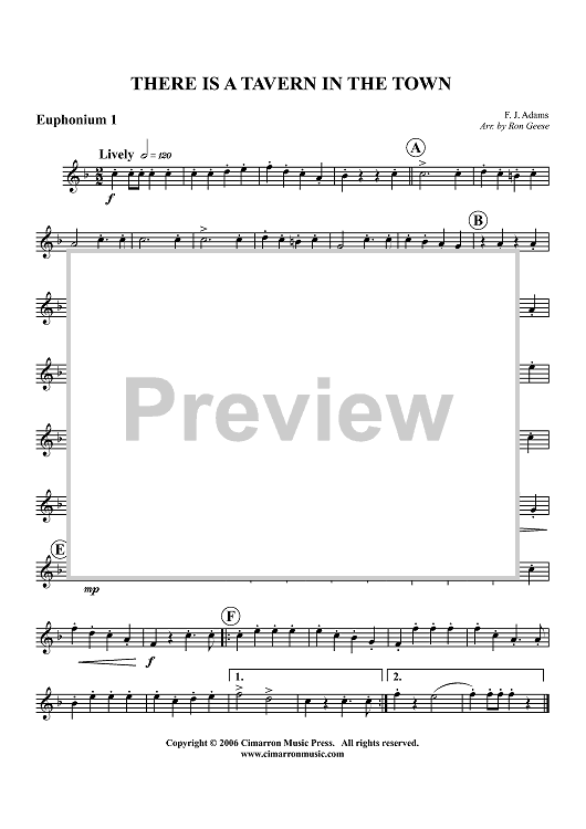 Digital Sheet Music for There is a Tavern in the Town - Euphonium 1 BC/TC by Ron Geese, F. J. Adams scored for Tuba Quartet; id:360274