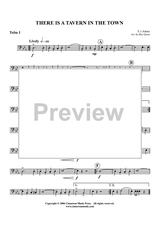 Digital Sheet Music for There is a Tavern in the Town - Tuba 1 by Ron Geese, F. J. Adams scored for Tuba Quartet; id:360276