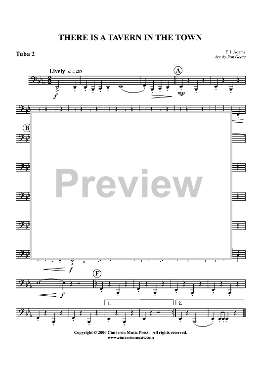 Digital Sheet Music for There is a Tavern in the Town - Tuba 2 by Ron Geese, F. J. Adams scored for Tuba Quartet; id:360277