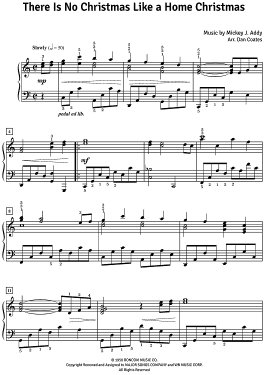 Digital Sheet Music for There is No Christmas Like a Home Christmas by Dan Coates, Mickey J. Addy scored for Piano Solo; id:501205