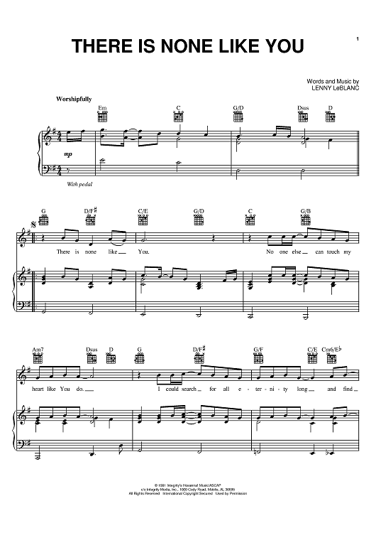 Digital Sheet Music for There Is None Like You by Lenny LeBlanc scored for Piano/Vocal/Chords; id:370997