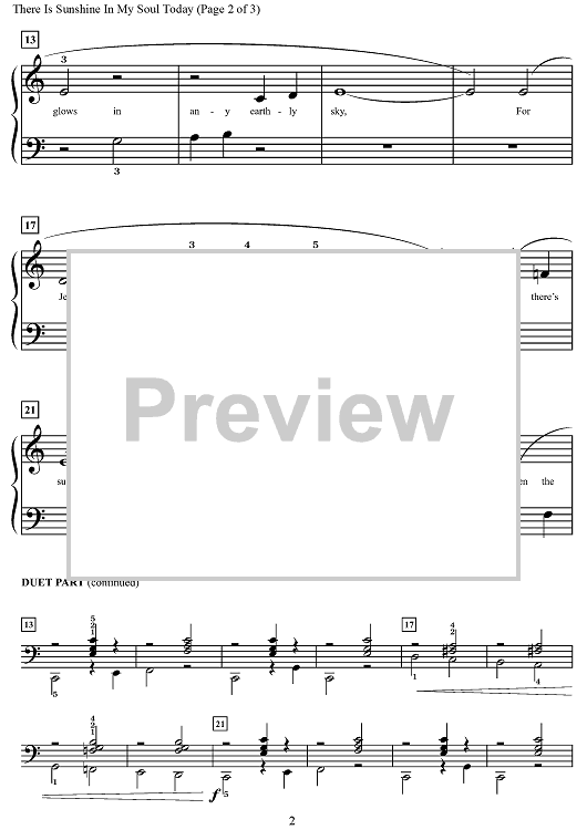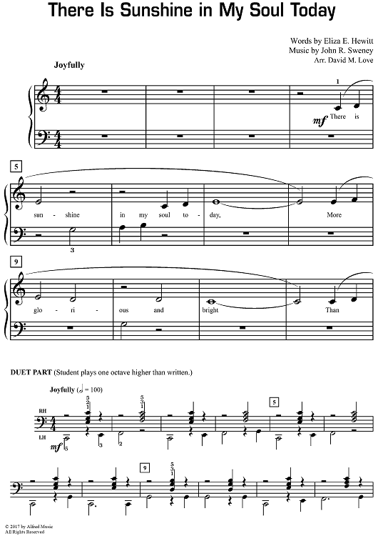 Digital Sheet Music for There Is Sunshine in My Soul Today by Eliza E. Hewitt, John R. Sweney, David M. Love scored for Piano Solo/opt.duet; id:498216