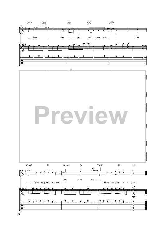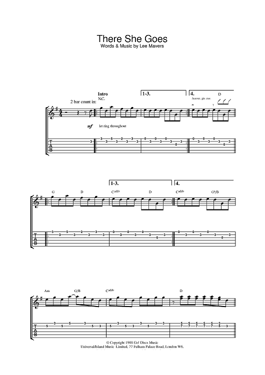 Digital Sheet Music for There She Goes by The La's, Lee Mavers scored for Guitar Tab; id:381661