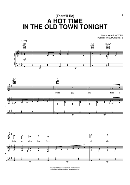Digital Sheet Music for (There'll Be) A Hot Time In The Old Town Tonight by Bessie Smith, Joe Hayden, Theodore A Metz scored for Piano/Vocal/Chords; id:368305
