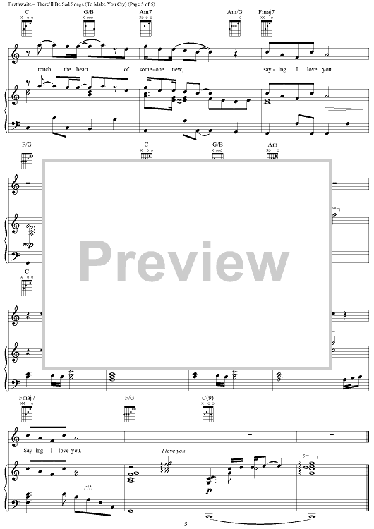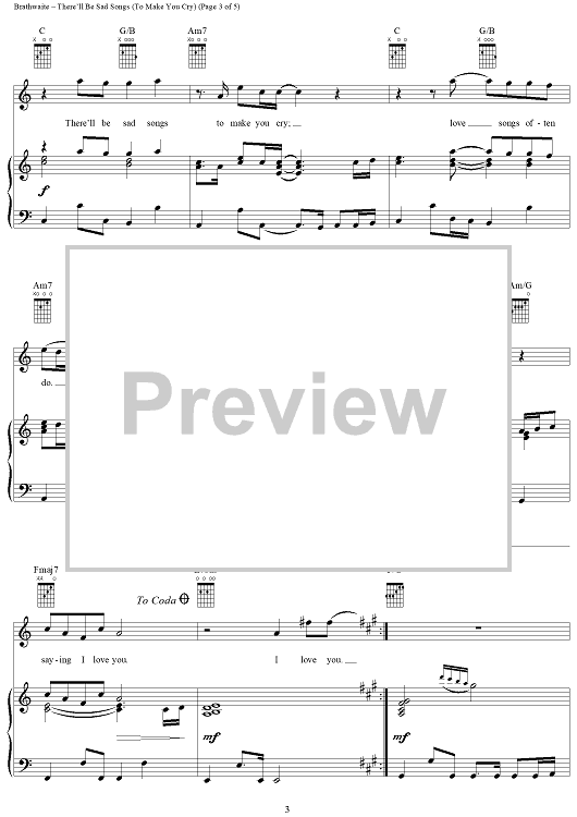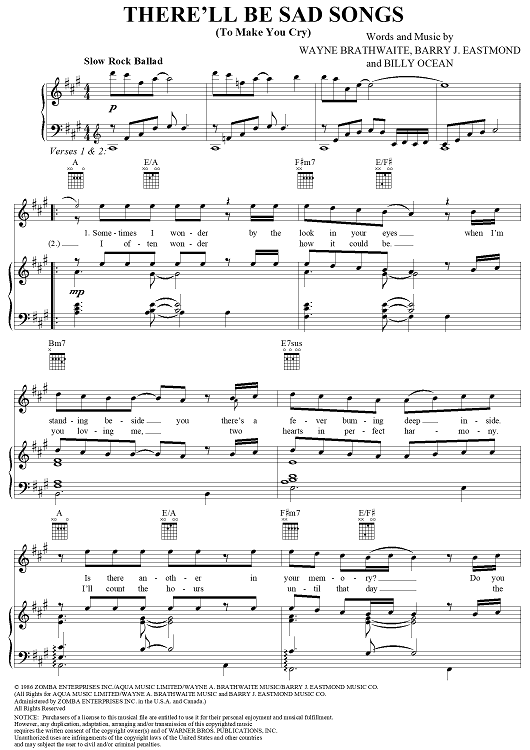 Digital Sheet Music for There'll Be Sad Songs (To Make You Cry) by Billy Ocean, Wayne Brathwaite, Barry Eastmond scored for Piano/Vocal/Chords; id:286227