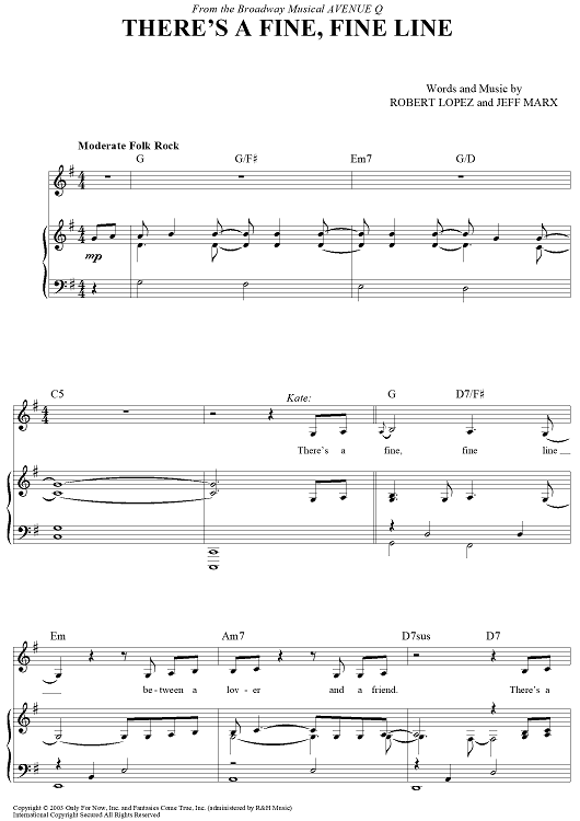 Digital Sheet Music for There's A Fine, Fine Line by Robert Lopez, Jeff Marx scored for Piano/Vocal/Chords; id:374779