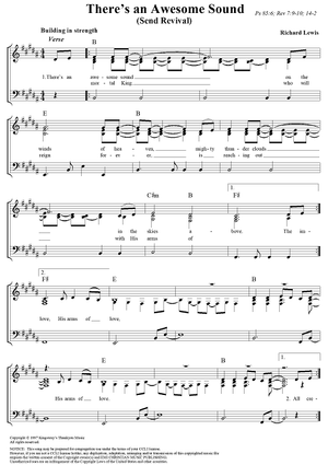 Digital Sheet Music for There's an Awesome Sound (Send Revival) by Richard Lewis scored for Piano/Vocal/Chords; id:110047