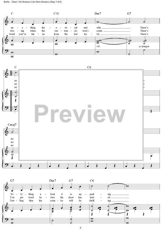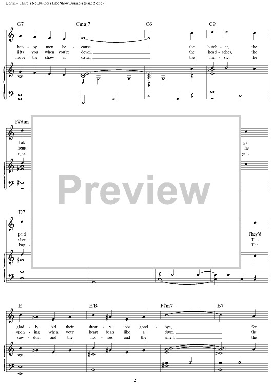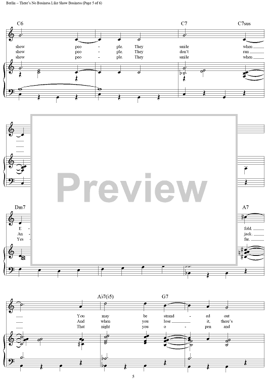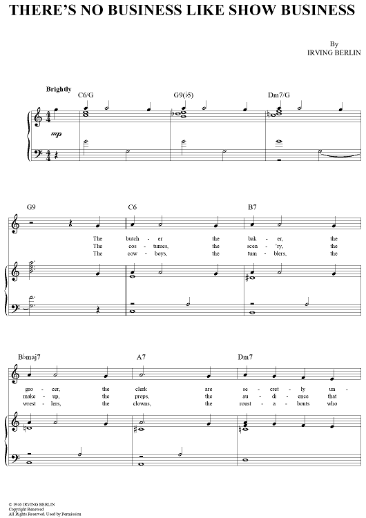 Digital Sheet Music for There's No Business Like Show Business by Irving Berlin scored for Piano/Vocal/Chords; id:305458