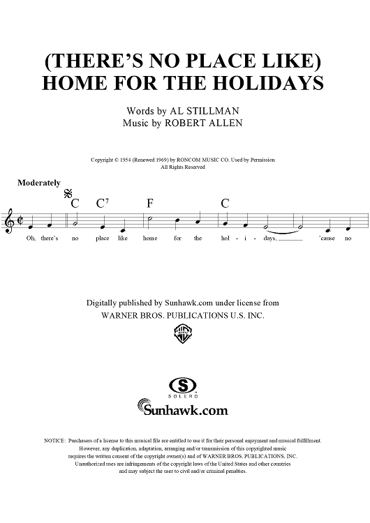 Digital Sheet Music for (There's No Place Like) Home for the Holidays by Robert Allen, Al Stillman scored for Lead Sheet; id:277577