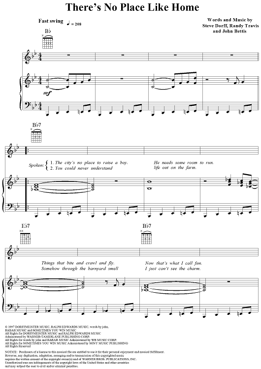 Digital Sheet Music for There's No Place Like Home by Randy Travis, Steve Dorff, Jerry Van Dyke, Cloris Leachman, John Bettis scored for Piano/Vocal/Chords; id:111952