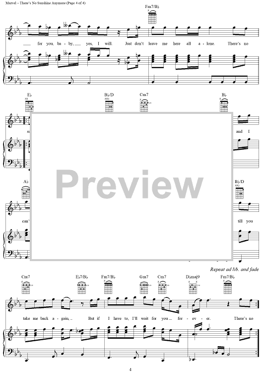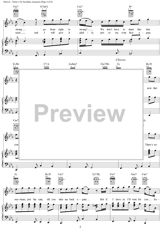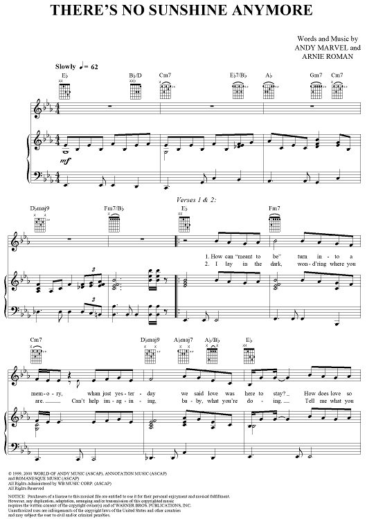 Digital Sheet Music for There's No Sunshine Anymore by Jon Secada, Arnie Roman, Andy Marvel scored for Piano/Vocal/Chords; id:289430