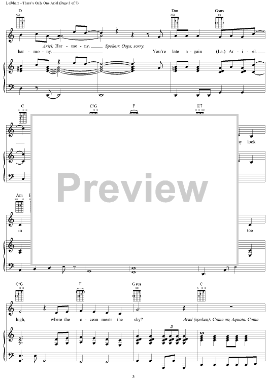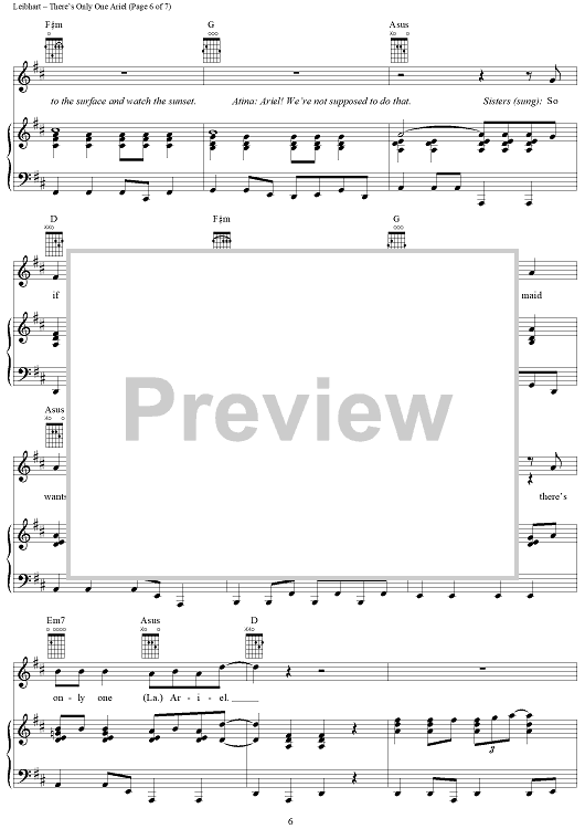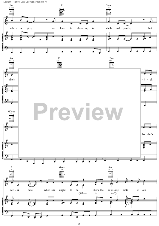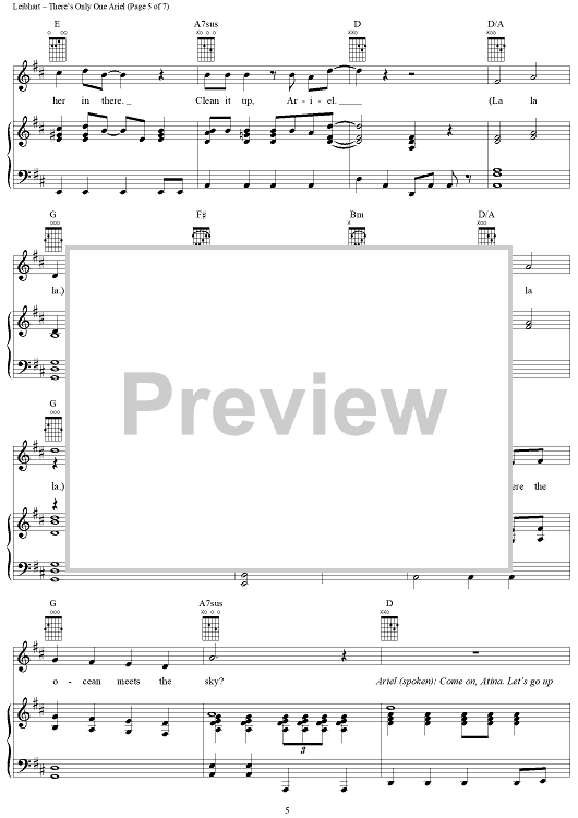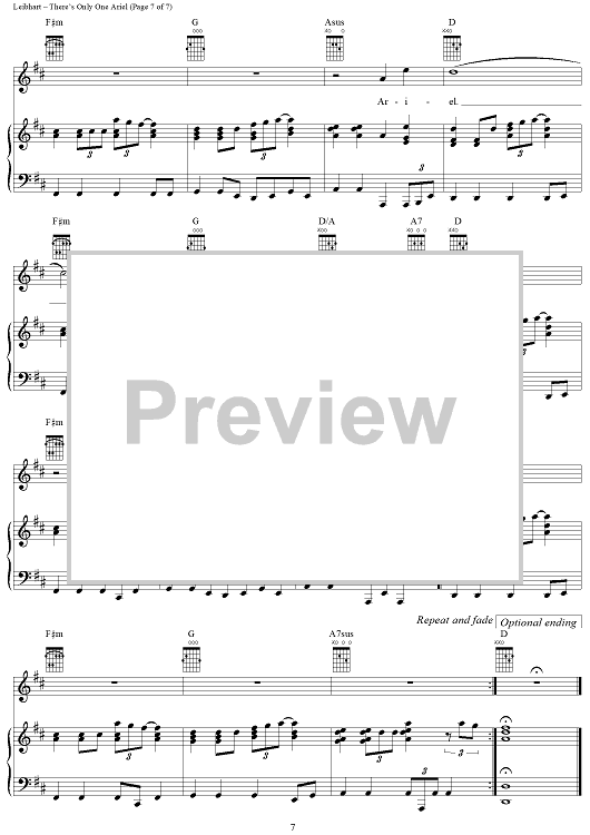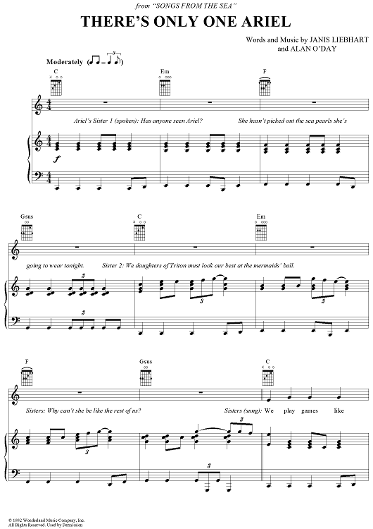 Digital Sheet Music for There's Only One Ariel by Alan O'Day, Janis Leibhart scored for Piano/Vocal/Chords; id:367609