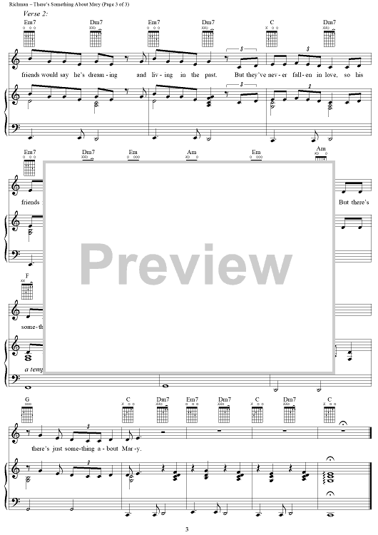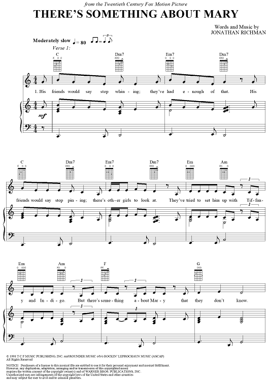 "There's Something About Mary" Sheet Music by Johnathan Richman