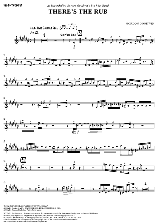 Digital Sheet Music for There's the Rub - Trumpet 3 by Gordon Goodwin, Gordon Goodwin's Big Phat Band scored for Jazz Ensemble; id:308724