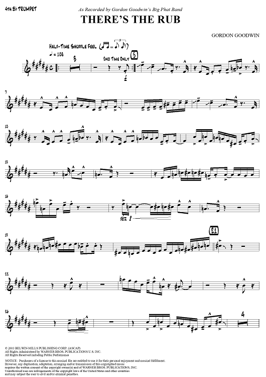 Digital Sheet Music for There's the Rub - Trumpet 4 by Gordon Goodwin, Gordon Goodwin's Big Phat Band scored for Jazz Ensemble; id:308725